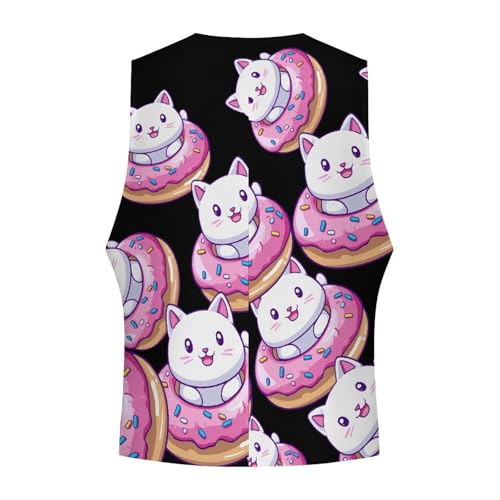 Cute Cat Donut Men's Suit Vests Business Formal Dress Vest V-Neck Waistcoat for Wedding Casual 3