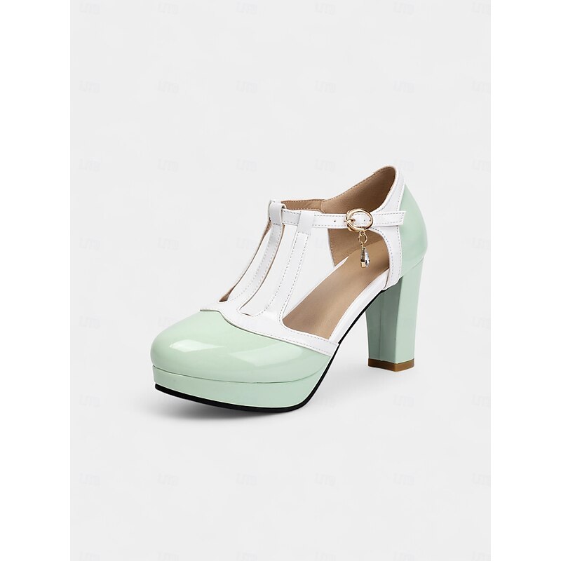 Highlights - Made with sleek and stylish patent leather upper material - Features a comfortable synthetic leather lining - Chunky heel provides stability and support - Classic round toe shape for a timeless look - Durable rubber outsole for long-lasting wear