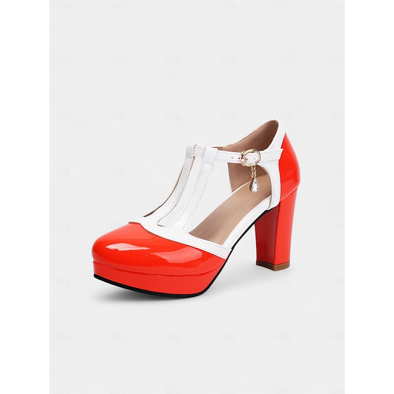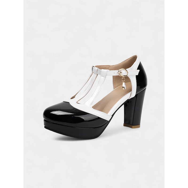 HOT ! Women's Black and White T-Strap High Heel Pumps with Platform – 1950s Vintage-Inspired Elegant Footwear for Office, Weddings, and Cocktail Parties
