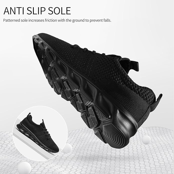 HOT ! WCIDFY Running Workout Shoes Unisex Breathable Tennis Walking Shoes Slip on Gym Sneakers Daily Footwear Traveling Black 12 Women/11 Men