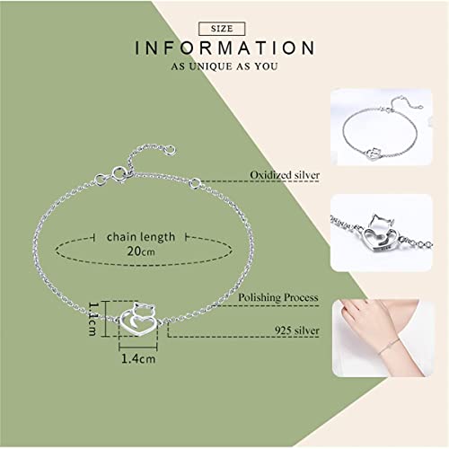 • 【ADJUSTABLE CHAIN BRACELET】 0.43in x 0.55in cat charm. Length : 7.9in. Adjustable with clasp which make sure this sterling silver chain bracelet will perfectly fit all wrist sizes. Easy to put on and smooth edges won’t hurt your skin.