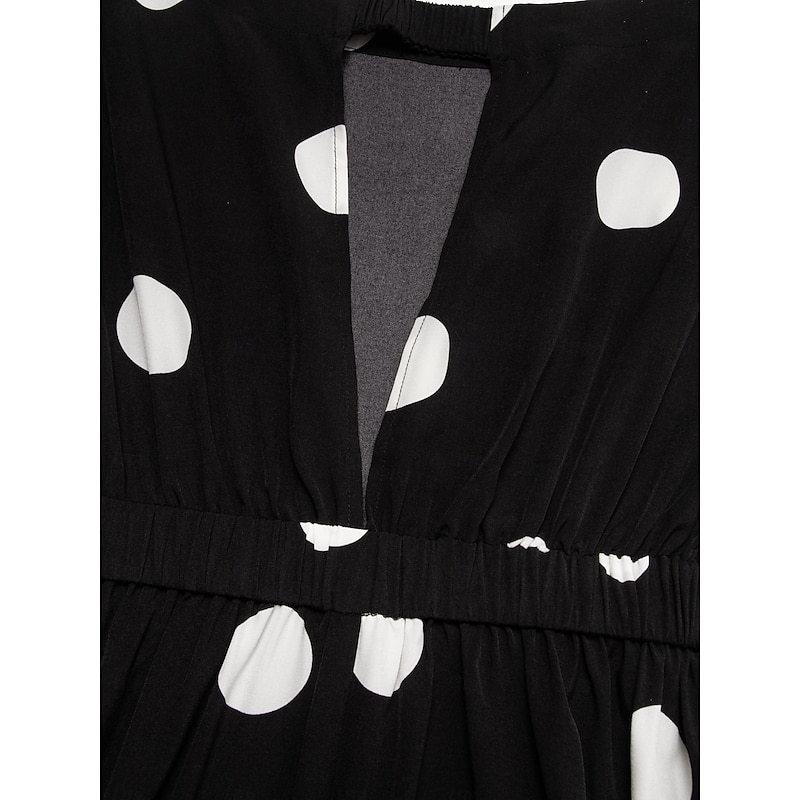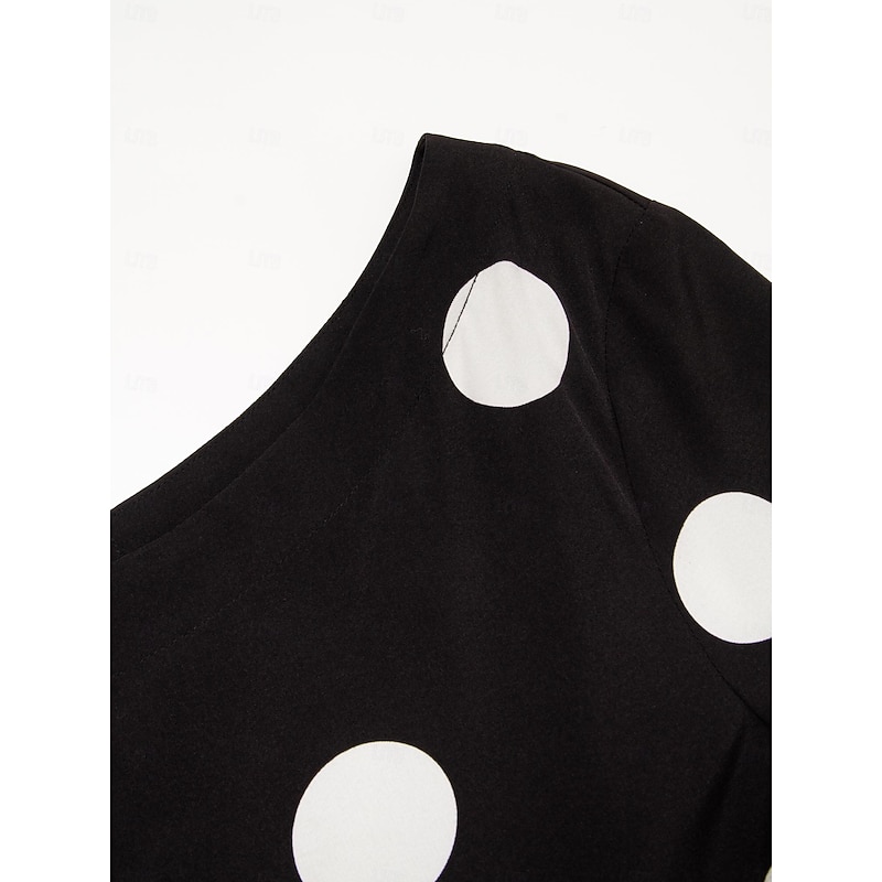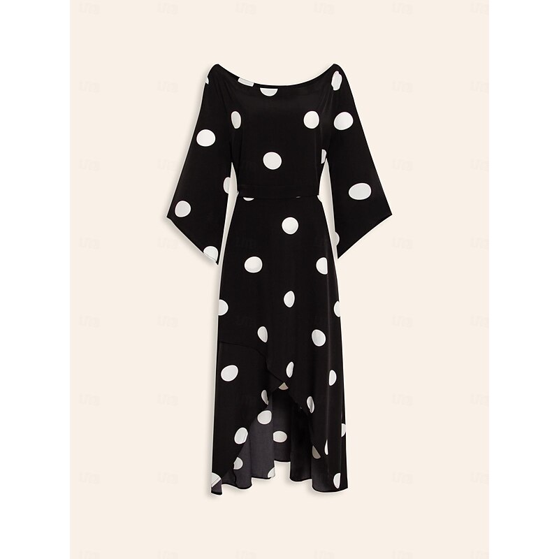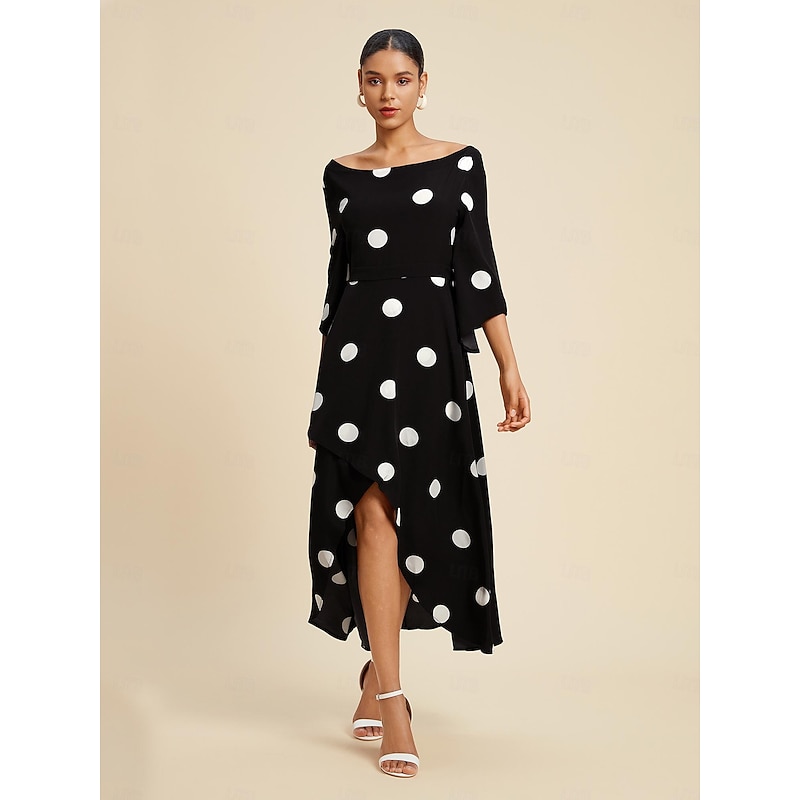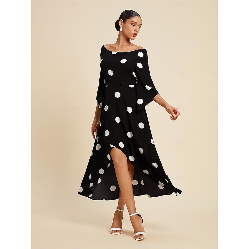 More information about Women's Elegant Dress Midi Dress Black 3/4 Length Sleeve Polka dot print Asymetric Hem Off the Shoulder Spring & Summer Off Shoulder Elegant Romantic S M L