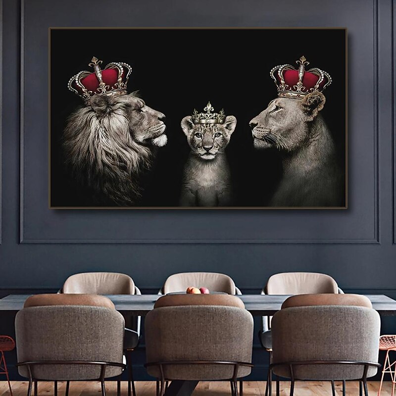 $17.49 - Abstract Black White Family of lions Painting Crown Lions Canvas Posters and Prints Picture for Modern Living Room Decoration 2025. Shop for cheap Animal Prints online? Buy at lightinthebox.com on sale today!