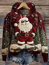 More information about Women's Pullover Hoodie Sweatshirt Graphic Santa Claus Punk Active Vintage Long Sleeve Hooded Regular Tops Street Dailywear Print Front Pocket Wine Red Red White Spring Fall Winter