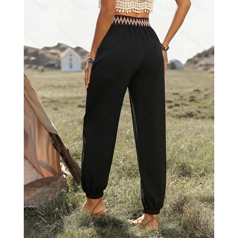 More information about Women's Slacks Casual Boho Full Length Natural Flower Patchwork Elastic Waist Outdoor Comfortable Street Going out Black Summer Regular Fit