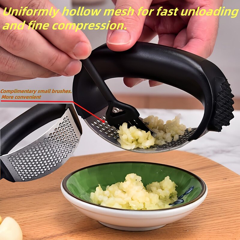 HOT ! Garlic Mincer Set, Two-in-One Meat Tenderizer and Garlic Press, with Included Brush and Garlic Peeler,3Pcs/Set