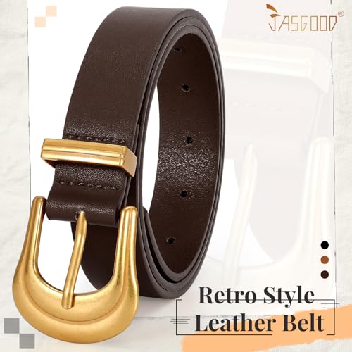 JASGOOD Women's Western Belt Vintage Black Leather Waist Belt for Pants Jeans with Gold Buckle 5