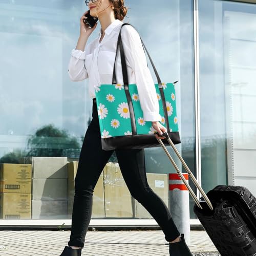 Lovely Daisy Floral Teal White Portable women laptop bag with zipper work handbags for ladies with diaper bolsa para laptop mujer 1