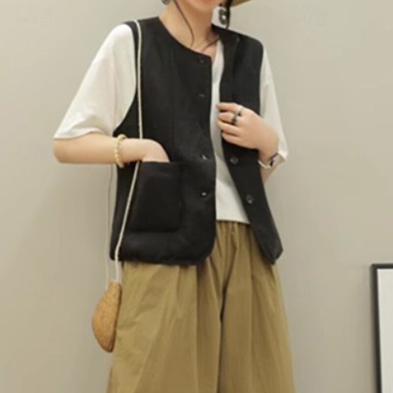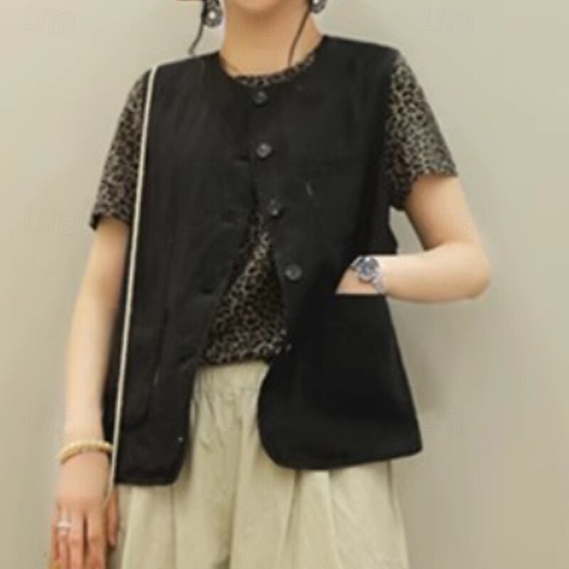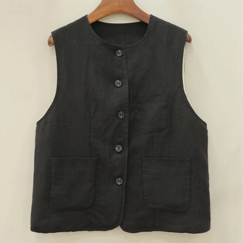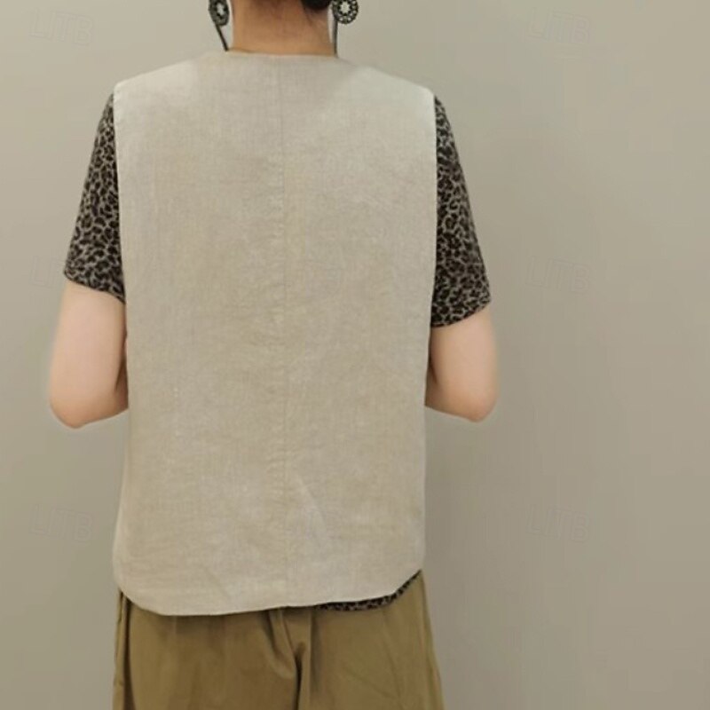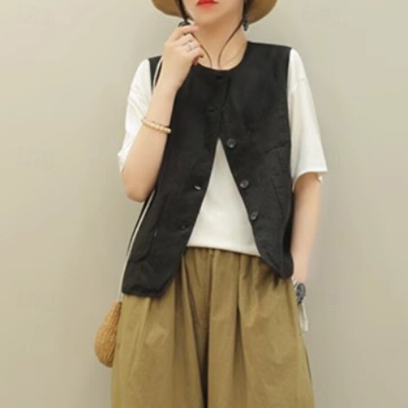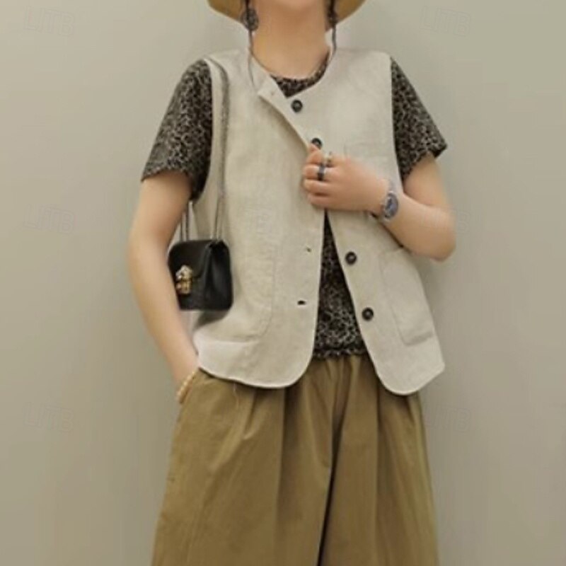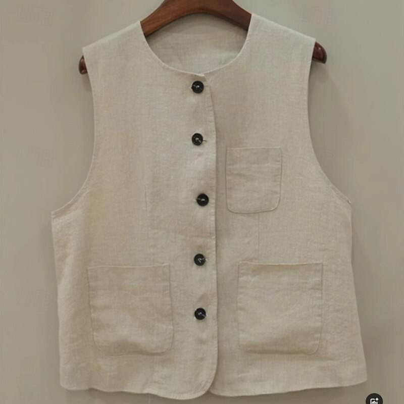 More information about Women's Linen-Inspired Shirts Plain Active Casual Sleeveless Crew Neck Regular Tops Daily Holiday Going out Buttons Pocket Black Green Apricot Summer