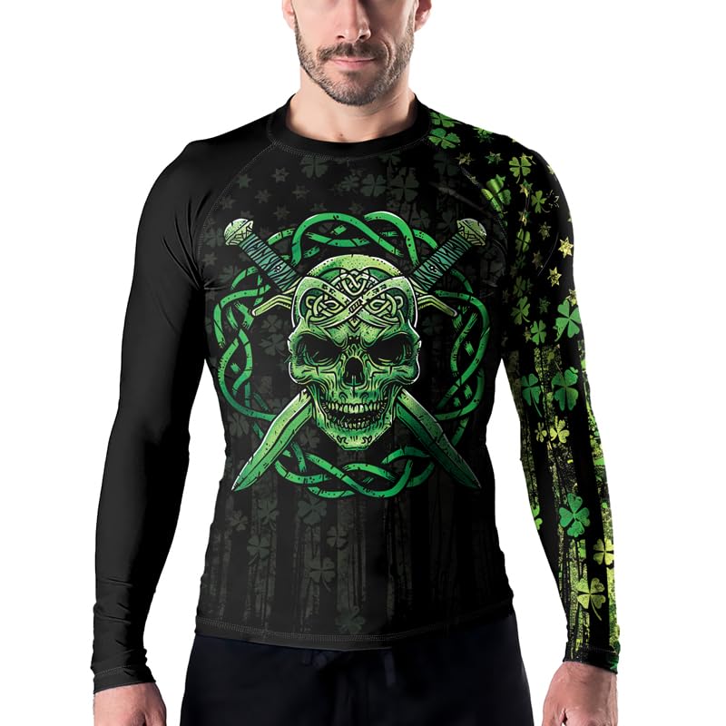 HOT ! St Patrick's Day BJJ Rash Guard for Men - Long Sleeve Workout Compression Shirts MMA Jiu Jitsu Grappling