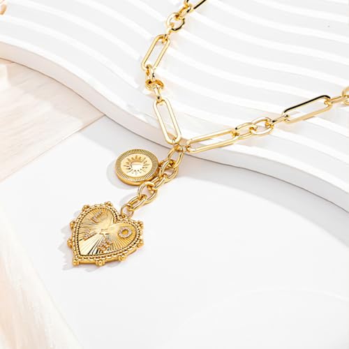 • Delicate Heart Necklace Design: The chunky golden heart pendant necklace stands out with its heart charm and round sun charm combination design. Choose this stylish heart pendant necklace to emphasize your personal charm
