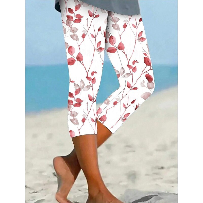 More information about Women's Leggings Vacation Vintage Basic Calf-Length High Waist Graphic Leaf Quick Dry Soft Comfortable Stretchy Casual Daily Holiday Robin's Egg Blue Yellow Red Green Summer Spring Slim Fit