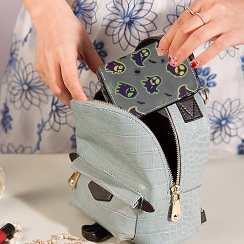 HOT ! 9 Credit Card Slots & 2 Cash Slots Women Wallet Zip Around Leather Travel Wallet with Zipper Cartoon Cute Ghosts Gray