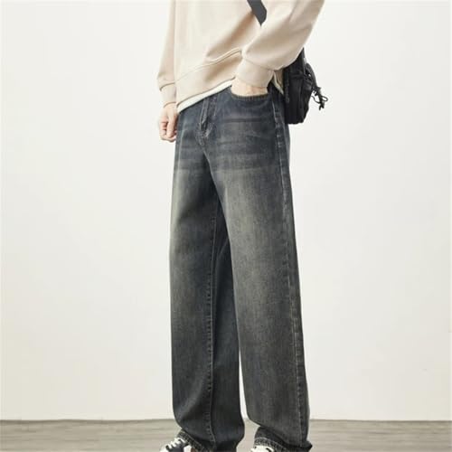 More information about Men's Thick Jeans Fall Winter Loose Fit Wide Leg Straight Denim Pants Korean Casual Style