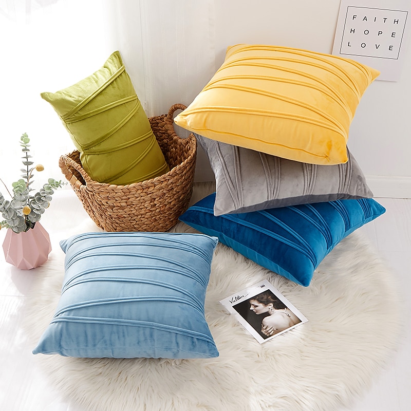 Decorative Toss Pillows Throw Pillow Covers Thickened Velvet 3D Striped Plaid Sofa Cushion Cover Outdoor Cushion Patio Throw Pillow Covers for Garden Farmhouse Bench Couch Pink Blue Sage Green Purple 9