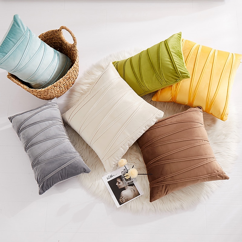 HOT ! Decorative Toss Pillows Throw Pillow Covers Thickened Velvet 3D Striped Plaid Sofa Cushion Cover Outdoor Cushion Patio Throw Pillow Covers for Garden Farmhouse Bench Couch Pink Blue Sage Green Purple