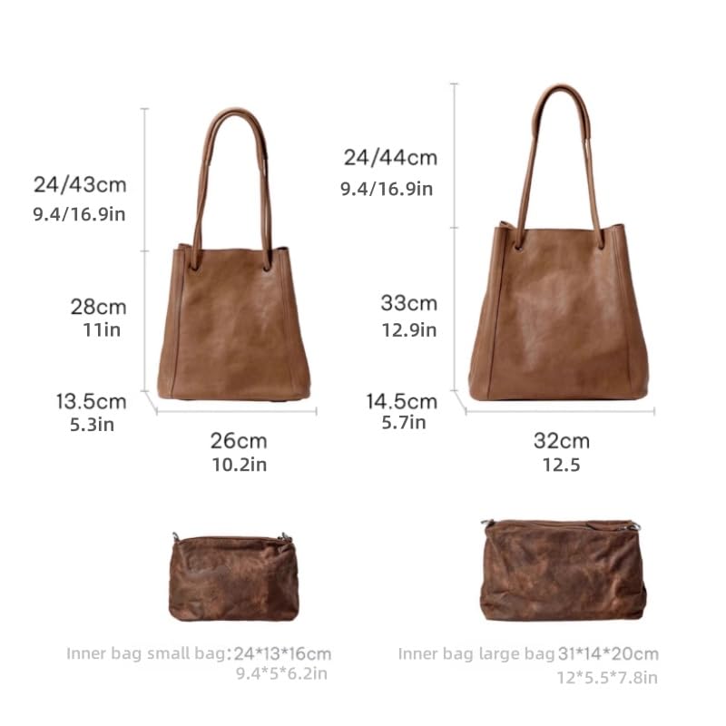 • Spacious & Organized:Retro Shoulder Bag Large size approx 32*14.5*33cm/12.6*5.7*13in,small size approx 26*13.5*28cm/10.2*5.3*11in,Contain inner container,roomy interior fits essentials like phone, wallet, keys, and makeup