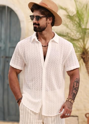 More information about Men's Knit Hollow Out Shirt Casual Summer Vacation Crochet Textured Button Down Shirts (S-XXL)