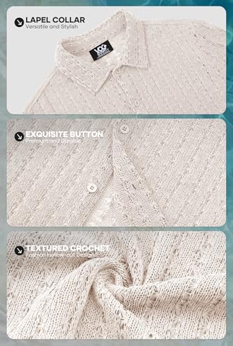 Men's Knit Hollow Out Shirt Casual Summer Vacation Crochet Textured Button Down Shirts (S-XXL) 4