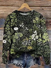 More information about Women's Sweatshirts Floral Graphic Vintage Casual Long Sleeve Crew Neck Round Neck Regular Tops Street Dailywear Casual Print Dark Green Spring Fall Winter