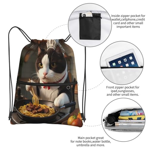 More information about Cartoon Cat Chef Drawstring Backpack Water Resistant String Bag Light Sackpack For Luggage