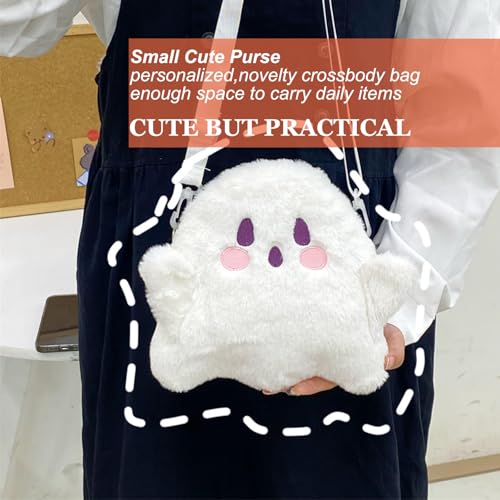 HOT ! Halloween Cute Ghost Purse Plush Mini Crossbody Candy Bag Fluffy Spooky Season Crossbody Purse Kawaii Cartoon Shoulder Bag for Women