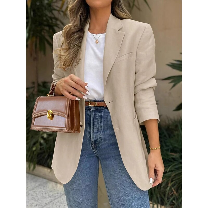 HOT ! Women's Blazer Comfortable Breathable Pocket Buttons Fashion Modern Plain Work Daily Regular Turndown Regular Fit Long Sleeve Outerwear Black White Khaki Spring Fall