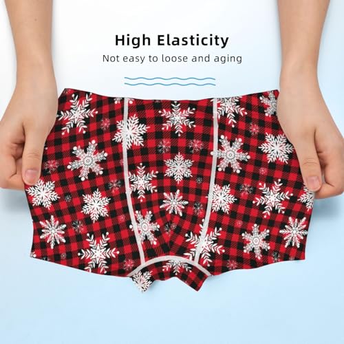 HOT ! Boys' Cotton Boxer Brief Soft Underwear-Snowflakes On A Buffalo Plaid Christmas