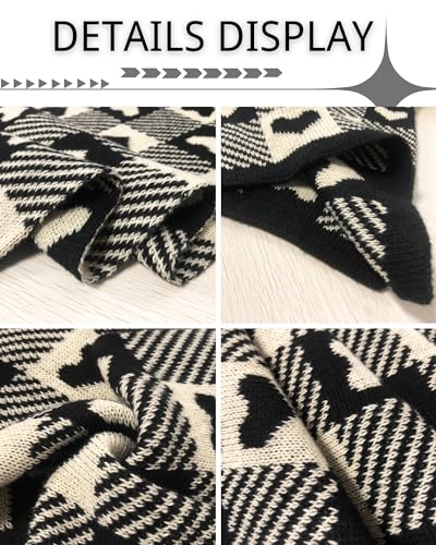• FEATURES: Trendy knit scarf with reversible heart jacquard pattern and classic checkerboard and stripe pattern, cute and retro. Suitable for couples, women and men, girls and boys.