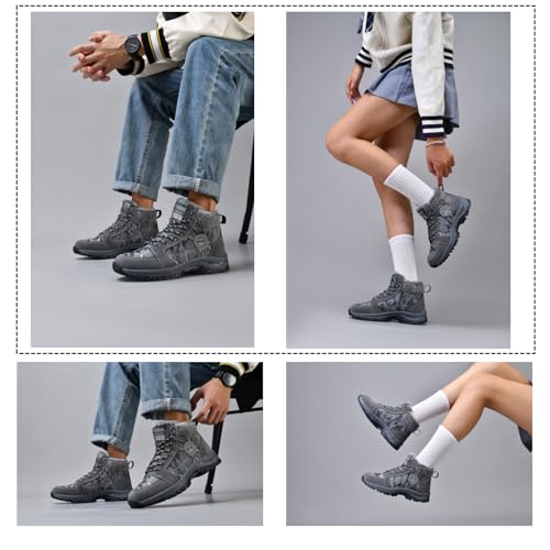 • Fashion design:The hiking boots men women are soft and lightweight with high top concise shape design.With fashion velcro straps and a hook and loop closure for fast tight or loose make it easy to put on.