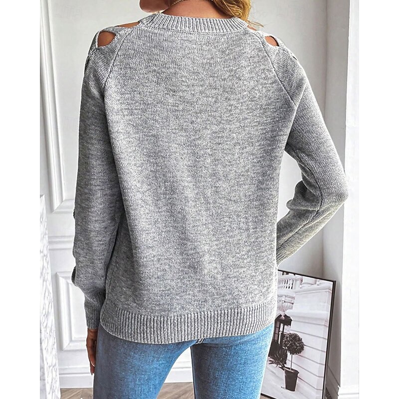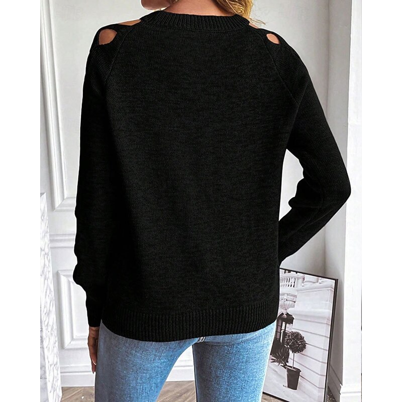 More information about Women's Sweater Pullover Streetwear Casual Solid Color Crew Neck Hollow Out Knitted Long Sleeve Regular Tops Knit Daily Holiday Going out Black Blue Fall Winter