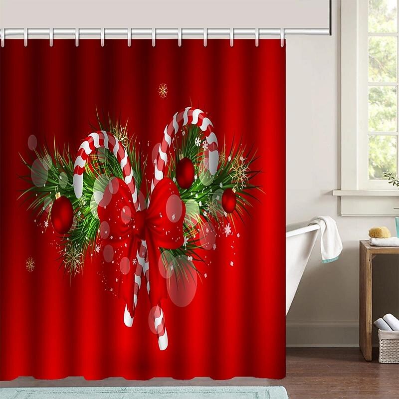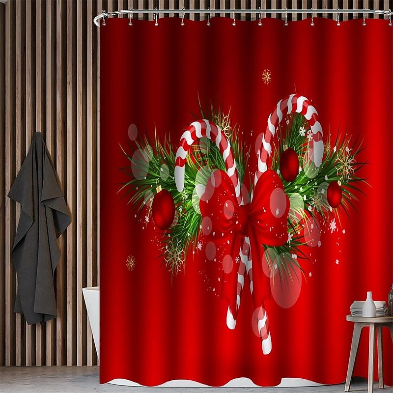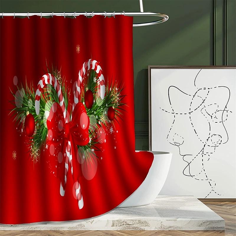 $20.99 - Merry Christmas Shower Curtain With 12 Plastic Hooks, Christmas Candy Christmas Tree Polyester Cloth Curtains , Non-Slip Bathroom Rug, Toilet U-Shape Mat, Toilet Lid Cover Pad, Xmas 2025. Shop for cheap Christmas Bath online? Buy at lightinthebox.com on sale today!