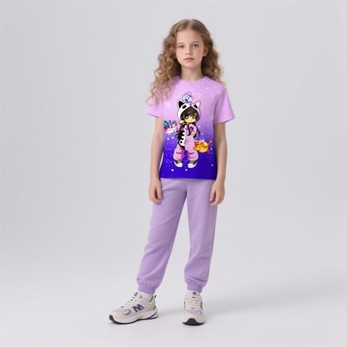 Girls Stylish Shirt Kids Graphic Tshirt Casual Short Sleeve Purple Party Outfit 4