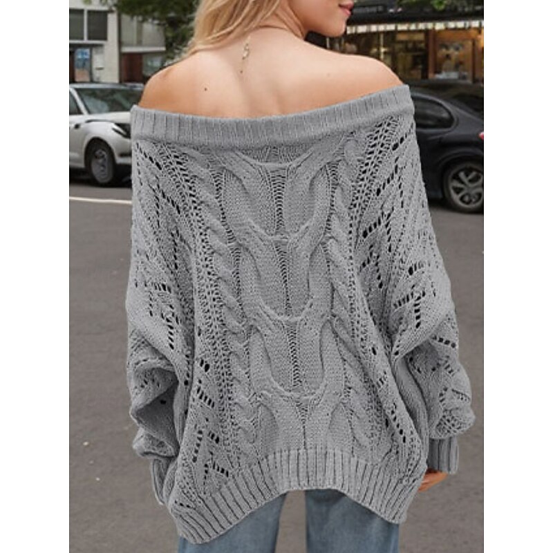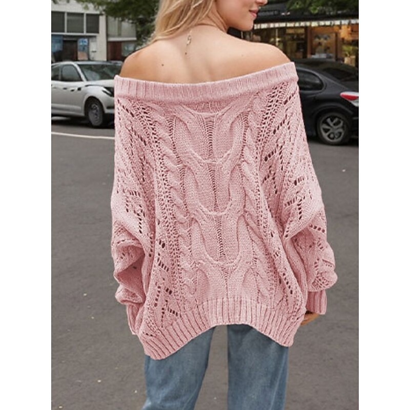 HOT ! Women's Sweater Casual Soft Pure Color Ribbed Crew Neck Knitted Hole Long Sleeve Regular Tops Knit Outdoor Daily Weekend Pink Khaki Fall Winter