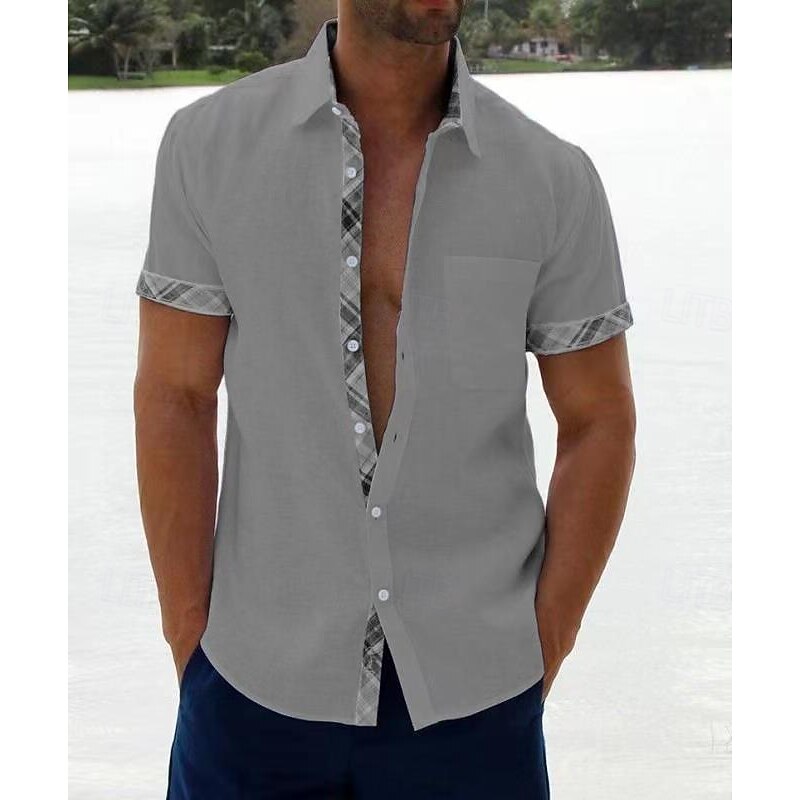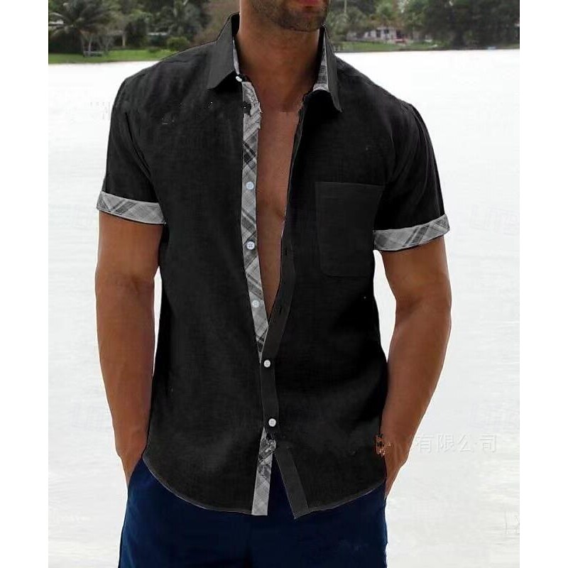 More information about Men's Shirt Summer Shirt Casual Shirt Beach Shirt Button Up Shirt Black White Pink Blue Orange Short Sleeve Plain Pattern Lapel Vacation Hawaiian Button-Down Clothing Apparel Polyester Fashion Casual