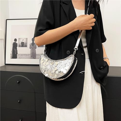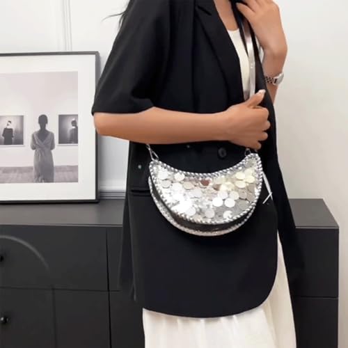 HOT ! Sequin Purse Sparkly Sequin Purse Y2K Crescent Bag Bling Crossbody Shoulder Bag Zipper Trendy Gift Women Girls