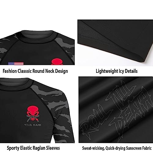 • ✔PEAK PERFORMANCE FABRIC: Engineered for athletes, this compression rash guard is made from a premium blend of 85% Polyester and 15% Spandex, ensuring flexibility and support during BJJ, MMA, and various combat sports.
