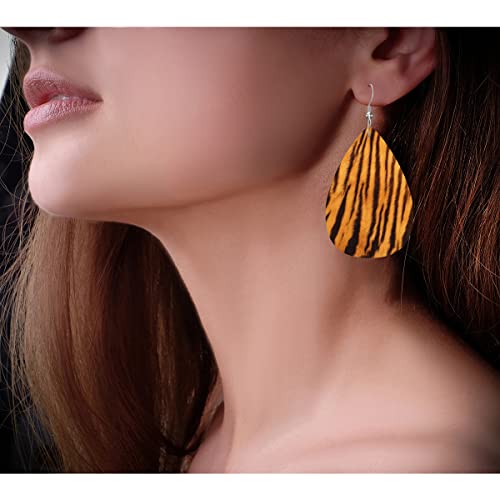 More information about Zokola Faux Leather Earrings Tiger Fur, Furry Animal Tiger Skin Lightweight Leaf Earring, Orange Black Stripes Teardrop Dangle Earrings Bridal Wedding Earrings For Friends Women