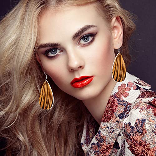• 1. GREAT MATERIAL -- Tiger Fur Women drop earrings is made of PU faux leather and stainless sliver hook. Not rust, not damage your skin. Wearing earrings for a long time will not make your ears uncomfortable