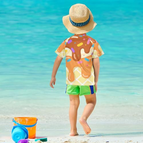 Cute Ice Cream Pattern Bathing Suit Girls Short Sleeves Athletic Shirt Swimwear Beach Tops 3T 3