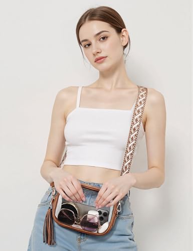 Yarnic Clear Bag Stadium Approved, PVC Transparent Crossbody Purse Small Transparent Crossbody Bag with Adjustable Shoulder Strap with Wide Strap for Concerts Sport Event Brown 7