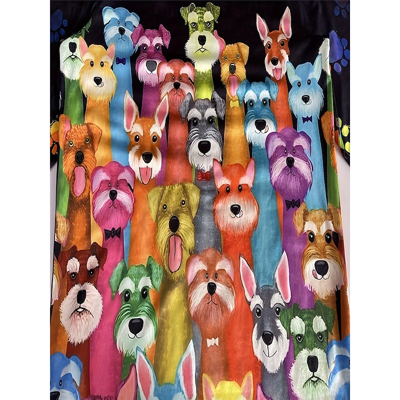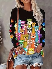 Highlights [Fabric]: Crafted from a high-quality polyester blend, this women's long-sleeve T-shirt offers a soft and comfortable feel. The material provides warmth and durability, suitable for both spring and fall seasons. Its micro-elastic property ensures a flexible fit that moves with you. [Fit]: The T-shirt is designed in a regular fit, providing a relaxed and comfortable wear experience. It offers ease of movement, making it ideal for day-to-day activities. [Design Highlights]: Featuring a playful and colorful dog print, this T-shirt adds a whimsical touch to your casual wardrobe. The sleeves are detailed with colorful paw prints on the cuffs, enhancing the playful aesthetic. The classic crew neck design adds to its casual appeal. [Occasions]: Perfect for daily casual wear, this T-shirt is suited for both indoor lounging and casual outings. Its vibrant design makes it a great choice for dog lovers and those looking to add a fun element to their everyday style. [Size Range]: Available in a wide range of sizes from S to 2XL, catering to various body types and preferences.