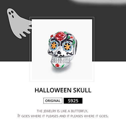 Halloween Ghost Charm Skull Bead 925 Sterling Silver for Pandora Style Bracelet,for Halloween (Colorful Skull Charm) 4