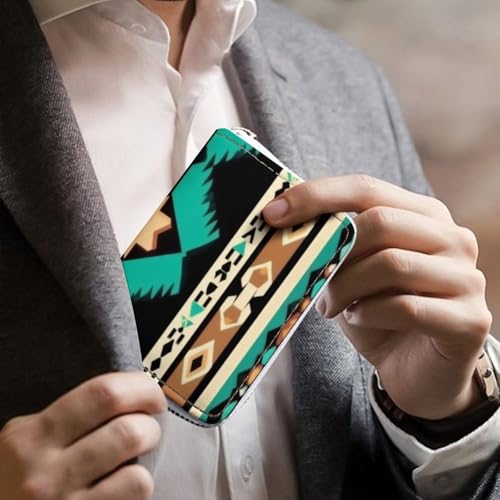 HOT ! Women's Portable Card Holder Wallet, Pu Leather Credit Card Organizer Bag with 20 Slots Tribal Navajo Aztec Geometric Ethnic Pattern Zipper Slim Coin Purse