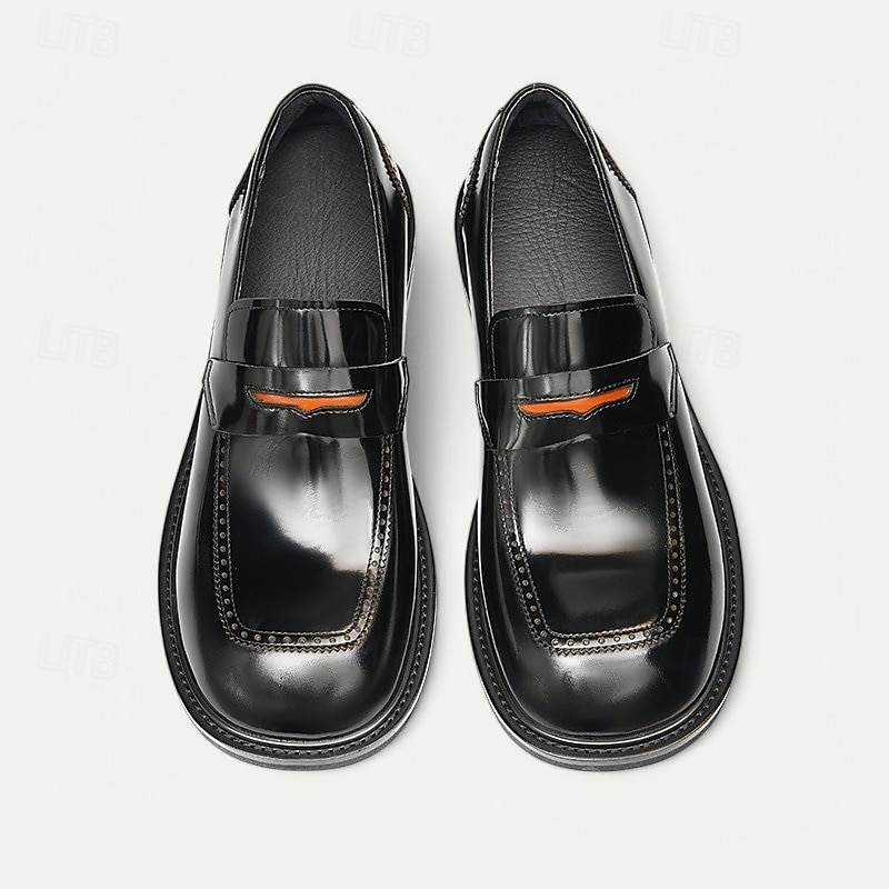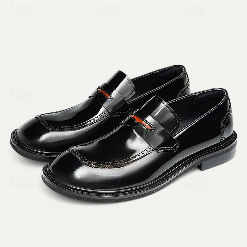 Men's Black Premium Cowhide Slip-On Loafers with Decorative Strap, Formal Style for Business and Special Occasions 1