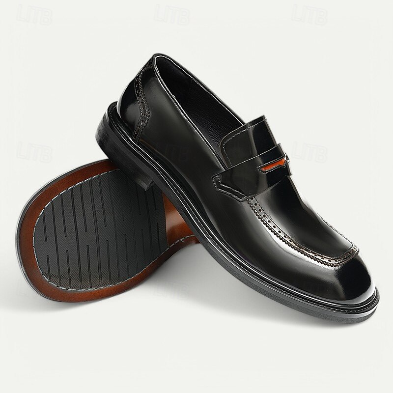 More information about Men's Black Premium Cowhide Slip-On Loafers with Decorative Strap, Formal Style for Business and Special Occasions