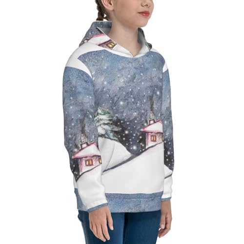 Watercolor Winter Landscape For Christmas Kid Hoodies Boys Sweatshirts Girls Pullover with Pocket 4