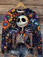 More information about Halloween Women's Pullover Skulls Graphic Casual Long Sleeve Crew Neck Regular Tops Street Dailywear Casual Print Red Orange Fall Winter