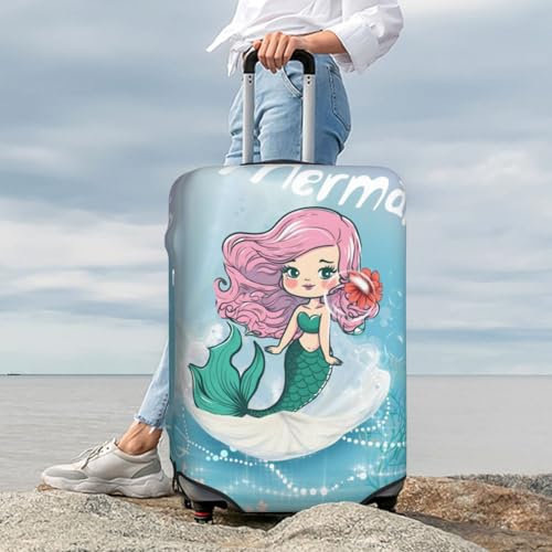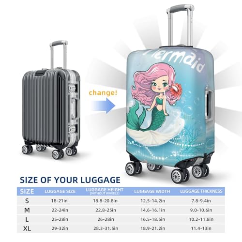 HOT ! Blue Mermaid Travel Luggage Cover Spandex Suitcase Protector Washable Baggage Covers Fits 18-32 Inch Luggage, L (26-28in)