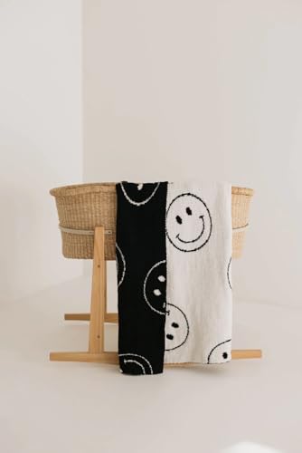 forever french Baby Plush Blanket | for Infant Toddler and Newborn | Receiving Blanket | 100% Microfiber Feather Yarn | Soft Warm Cozy for Crib Stroller & Travel | 45"x45" (Just Smile Black & Ivory) 4